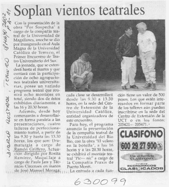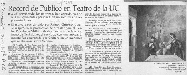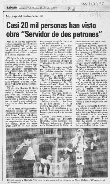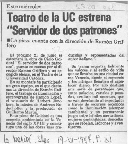 Teatro de la UC estrena "servidor de dos patrones" [artículo].