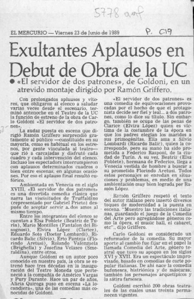 Exultantes aplausos en debut de obra de la UC [artículo].