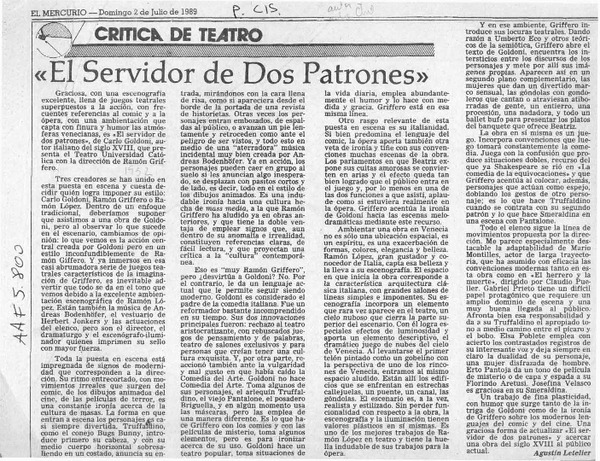 "El servidor de dos patrones" [artículo] Agustín Letelier.