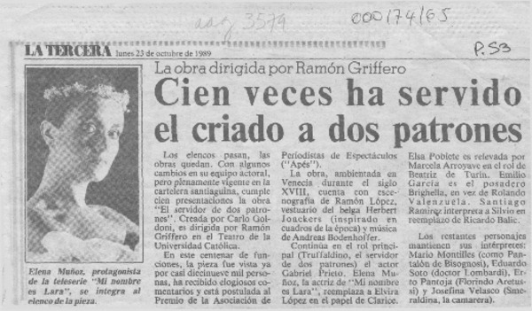 Servidor de dos patrones - Goldoni, Carlo - Autores italianos - Griffero S., Ramón - Entrevistas - Autores chilenos