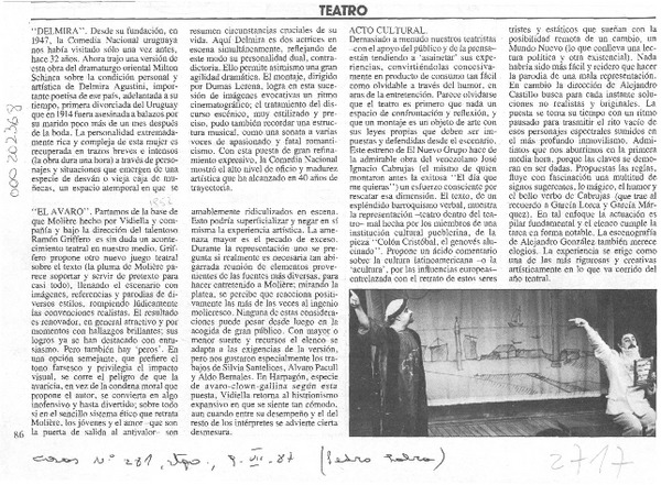 Vidiella, "Hemos hecho del Avaro un gran show" [artículo].
