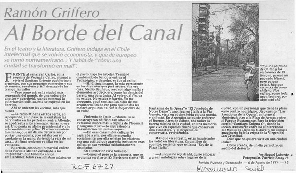 Ramón Griffero al borde del canal [artículo] Miguel Laborde.