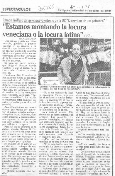 Estamos montando la locura veneciana o la locura latina : [entrevista] [artículo]