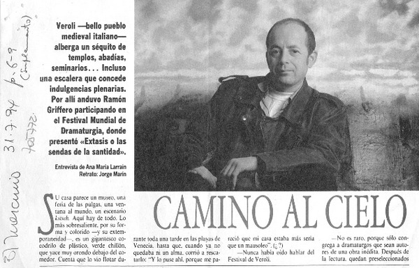 Camino al cielo : [entrevista] [artículo] Ana María Larraín.