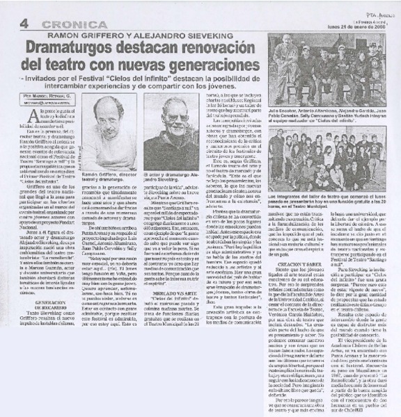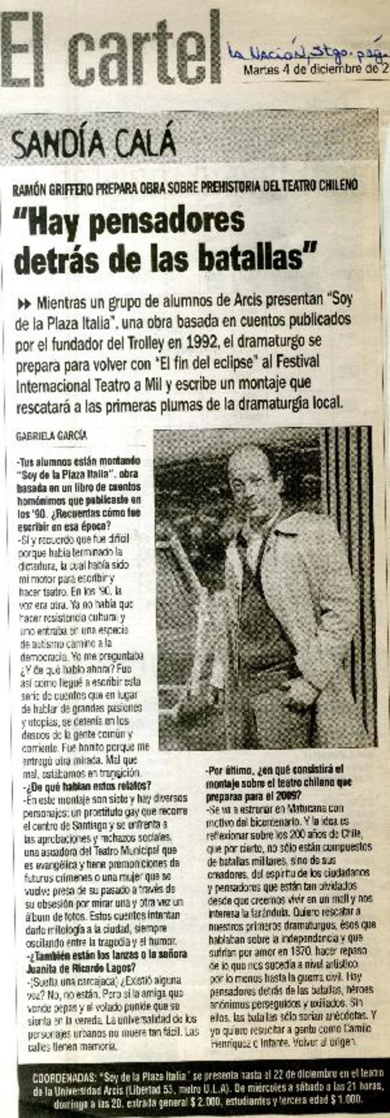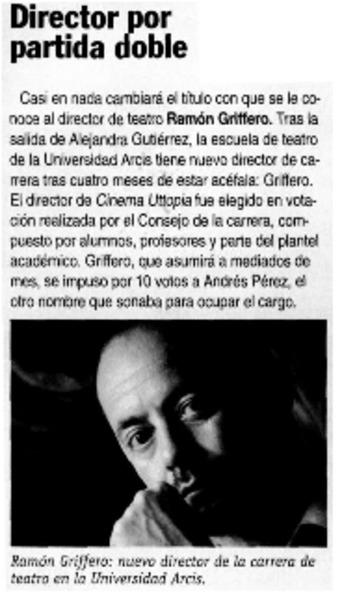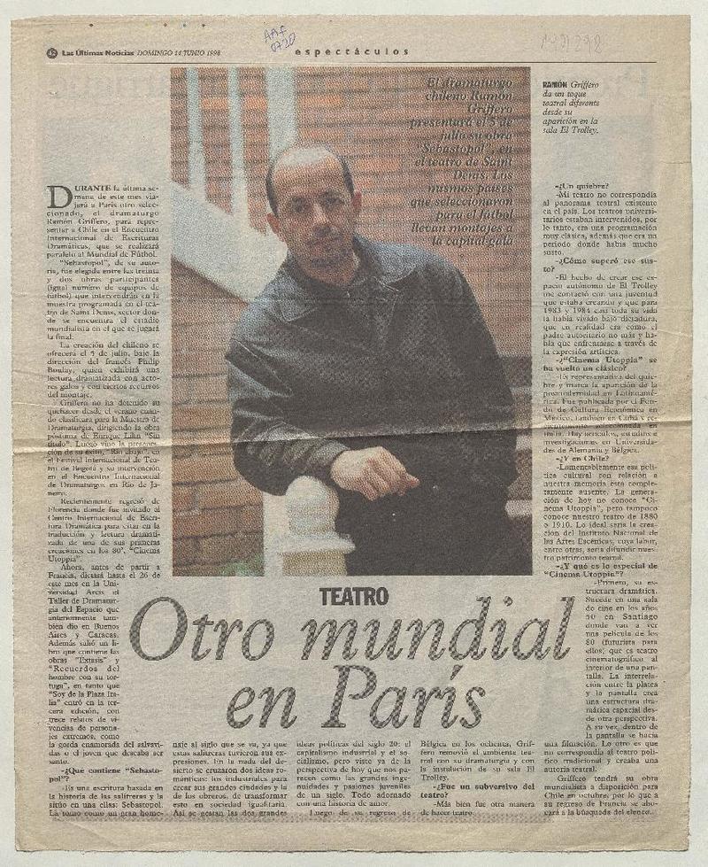 Griffero irá a "mundial dramatúrgico" [artículo] Leopoldo Pulgar.