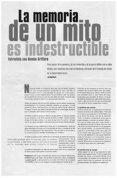 El retorno de Ramón Griffero [artículo] Marieta Santi