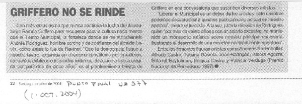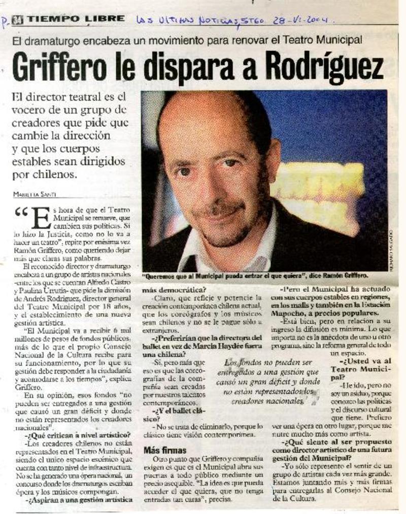 Griffero le dispara a Rodríguez [artículo] Marietta Santí.