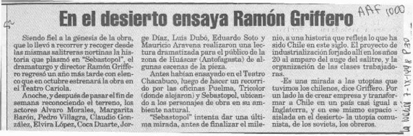 Ramón Griffero estrena montaje bilingüe [artículo]