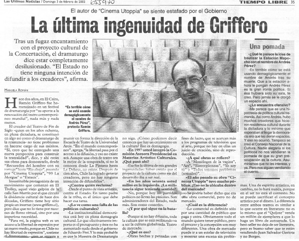 Griffero y sus nuevas utopías [entrevista] [artículo] : Marcela de Pablo.