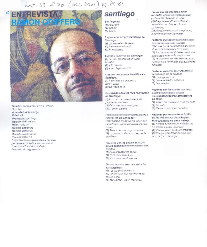 Griffero S., Ramón - Entrevistas - Autores chilenos