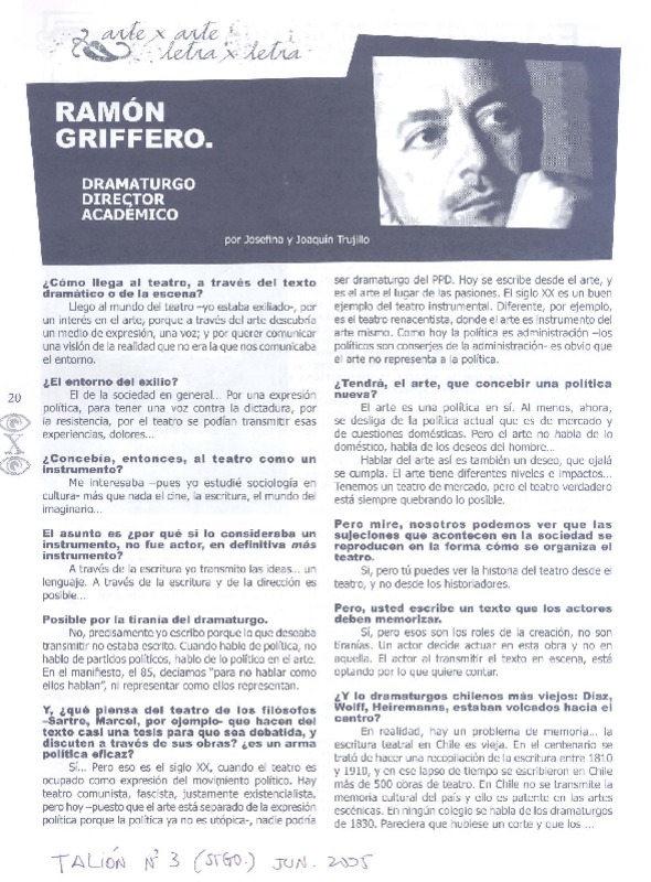 Ramón Griffero : dramaturgo director, académico [entrevista] [artículo] Josefina y Joaquín Trujillo.