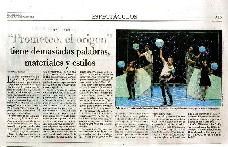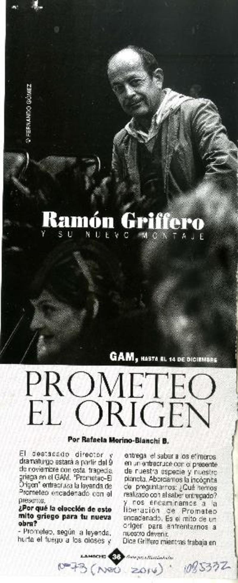 Ramón Griffero y su nuevo montaje. Prometeo el origen [artículo] Rafaela Merino-Bianchi B.