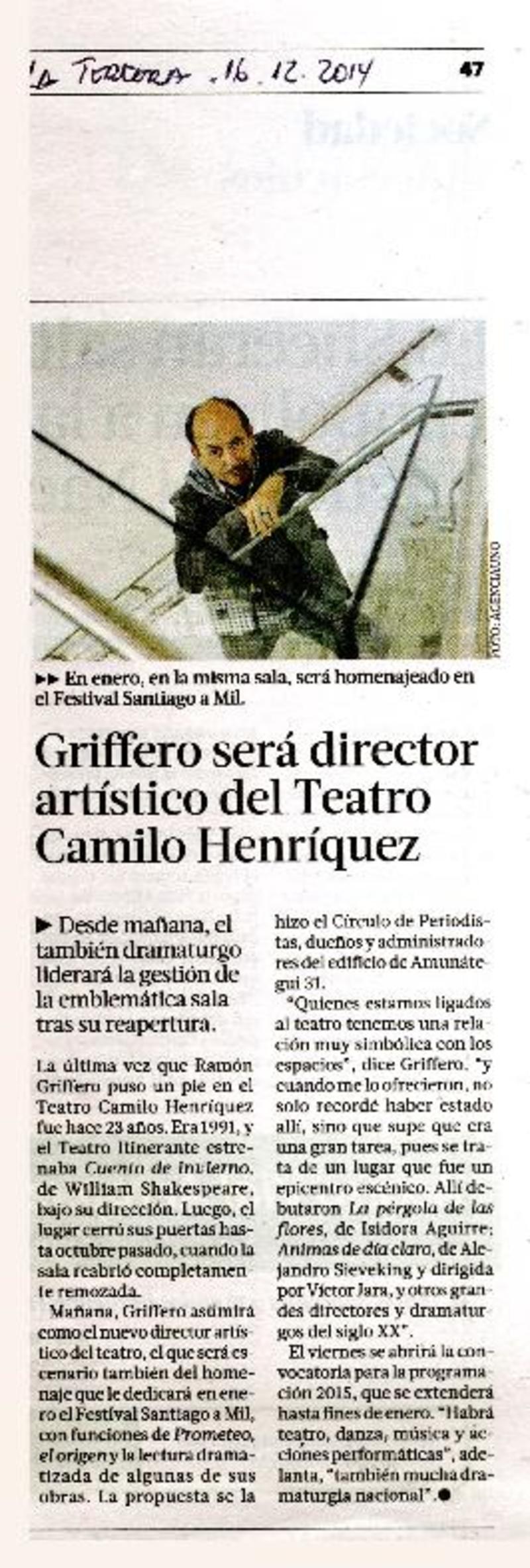 Griffero será director artístico del Teatro Camilo Henriquez [artículo]
