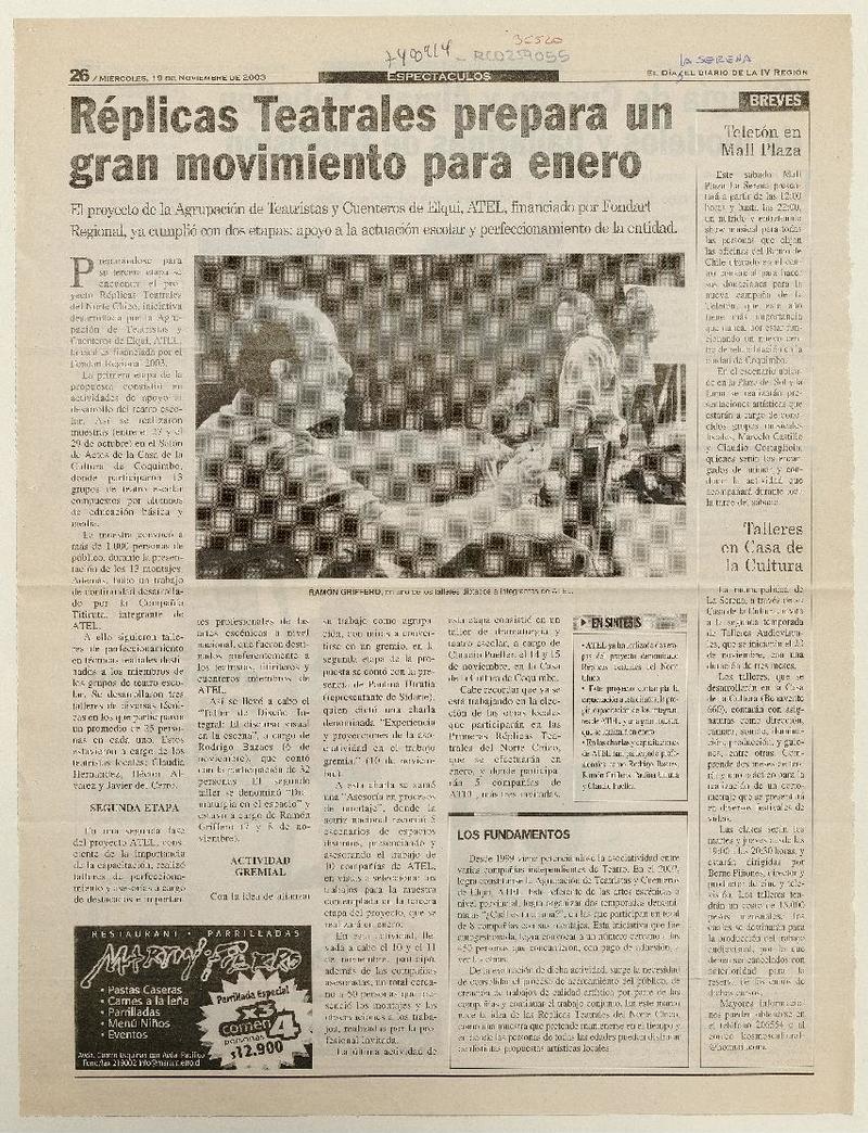 Réplicas teatrales prepara un gran movimiento para enero. [artículo]