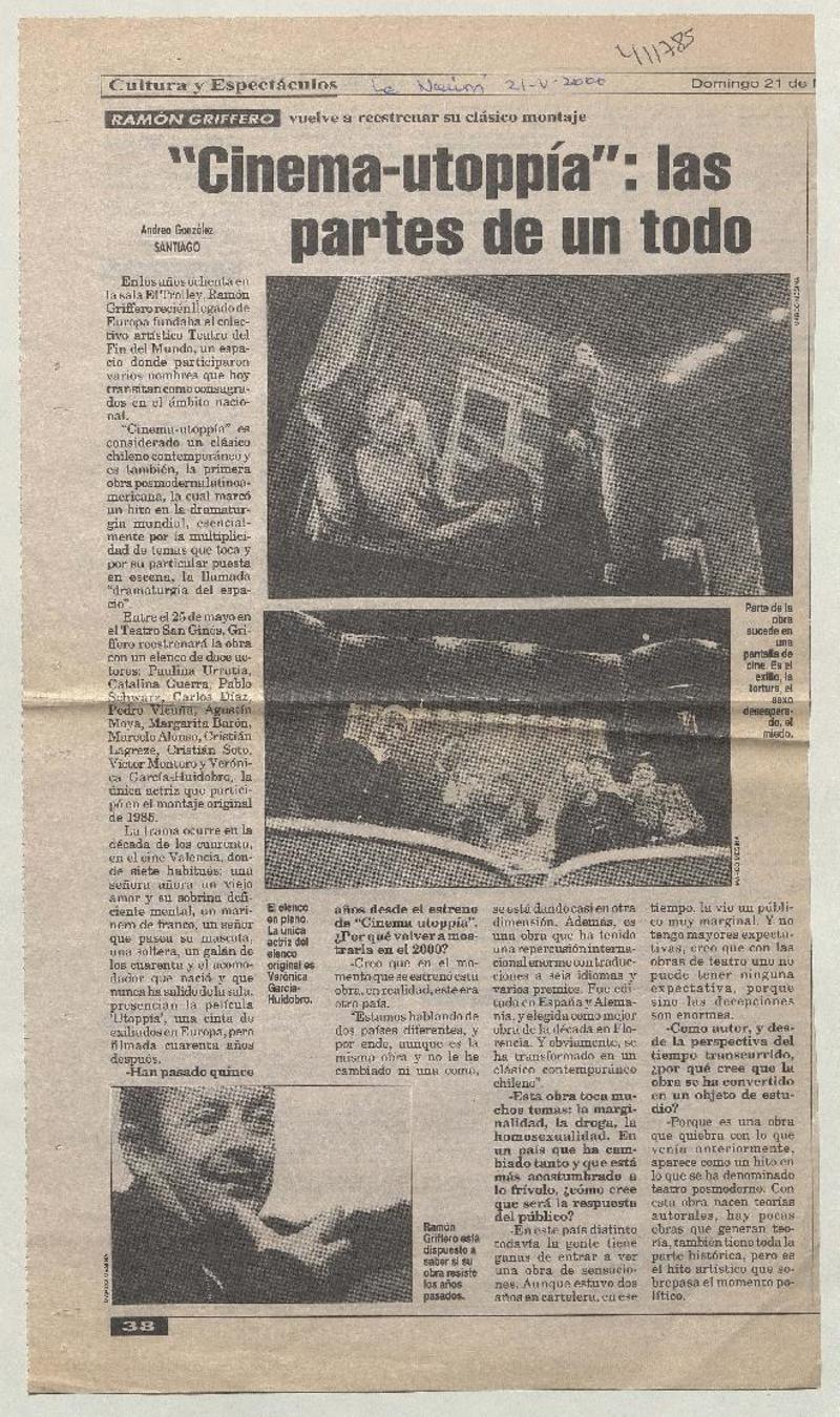 Ramón Griffero revive su emblemática "Cinema-Utoppia" [artículo] Eduardo Miranda.