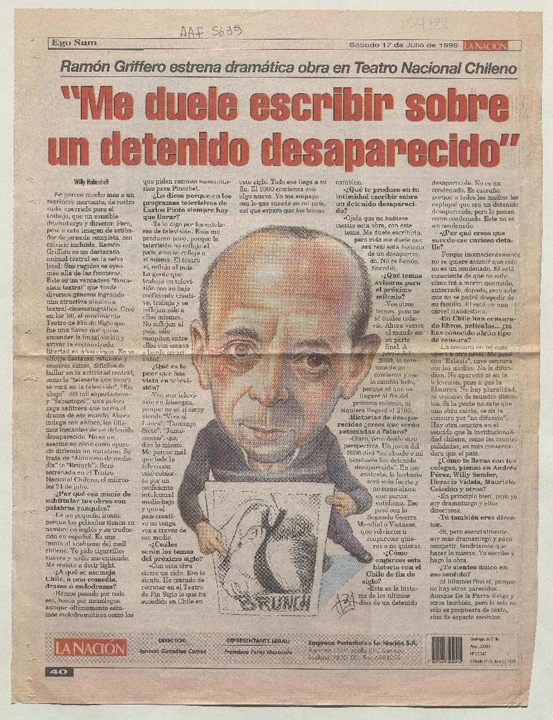 Griffero montará obra de Premio Nobel de Literatura [artículo] Leopoldo Pulgar I.