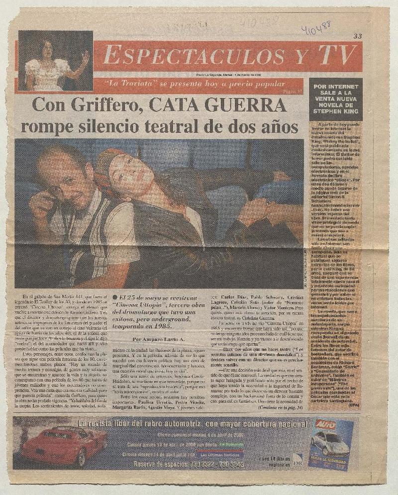 Con Griffero, Cata Guerra rompe silencio teatral de dos años [entrevista] [artículo] : Amparo Lavín A.