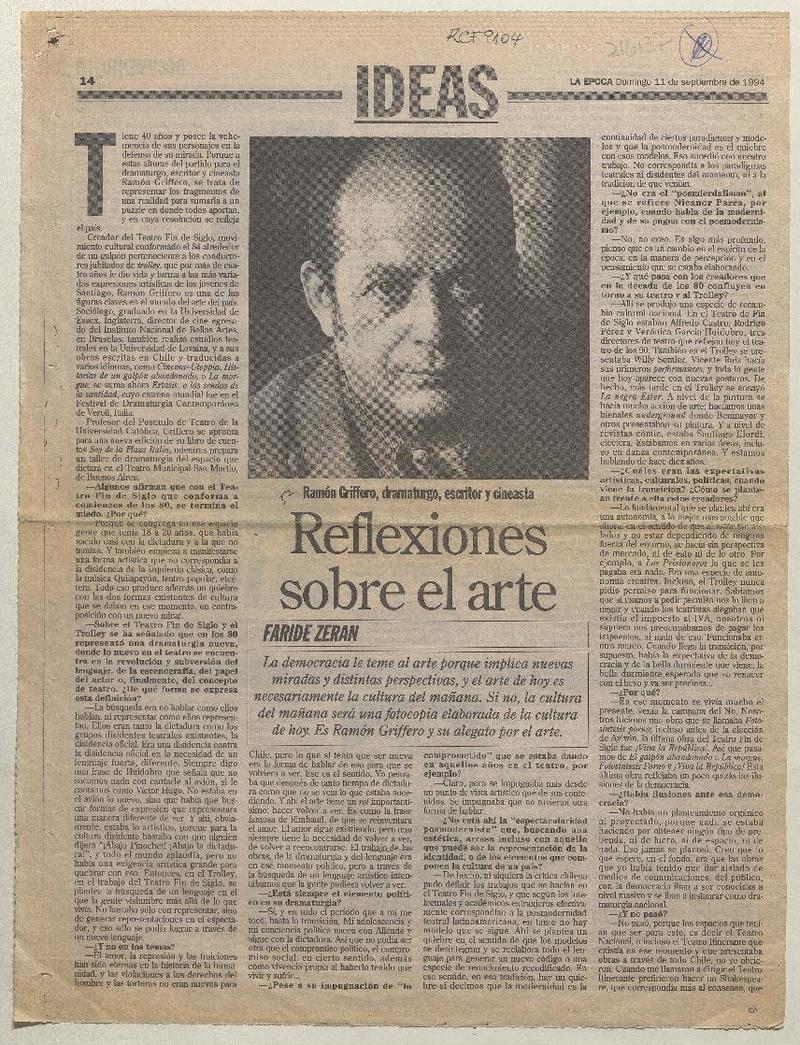 Autores chilenos - Griffero S., Ramón - Entrevistas