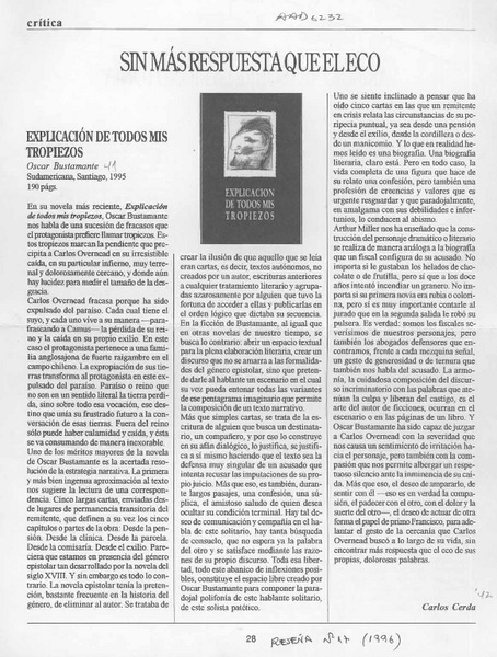 Sin más respuesta que el eco [artículo] Carlos Cerda.