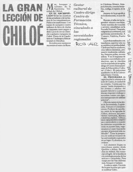 Con Chiloé en las venas" [artículo] Alfonso Larrahona Kasten.
