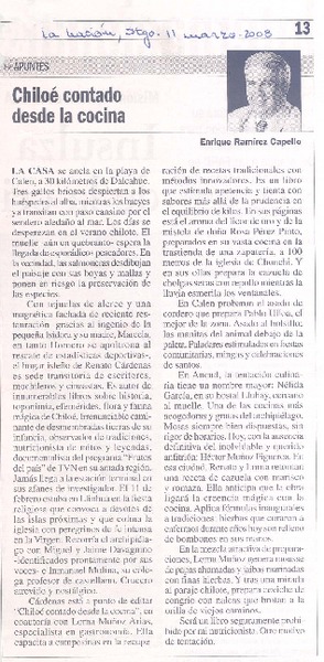 Chiloé contado desda la cocina [artículo]Enrique Ramírez Capello.
