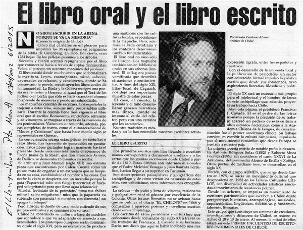 Libro sobre origen de Chiloé llega a Ancud [artículo].