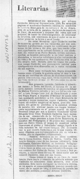 CALDERON, ALFONSO - MEMORIAS DE MEMORIA