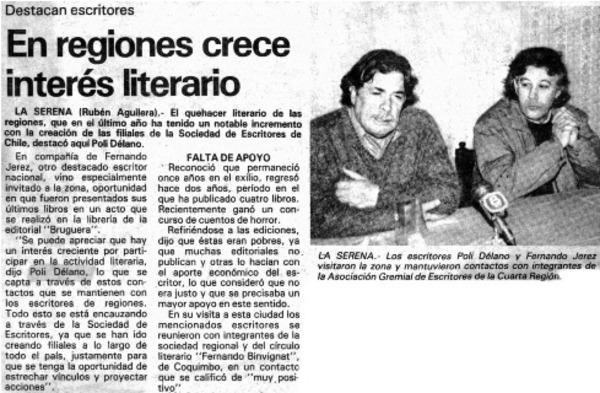 Délano y Jerez presentan recientes publiaciones. [artículo]