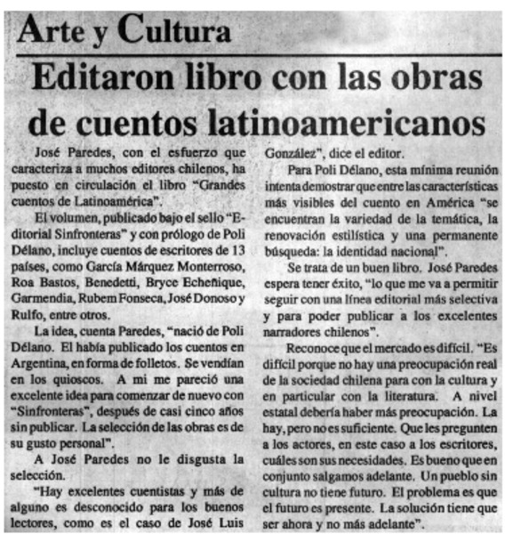 Publican en Argentina antología de cuentistas realizada por Poli Délano [artículo].