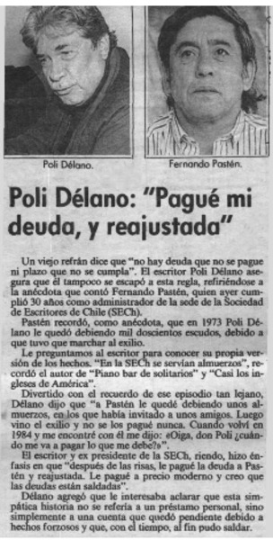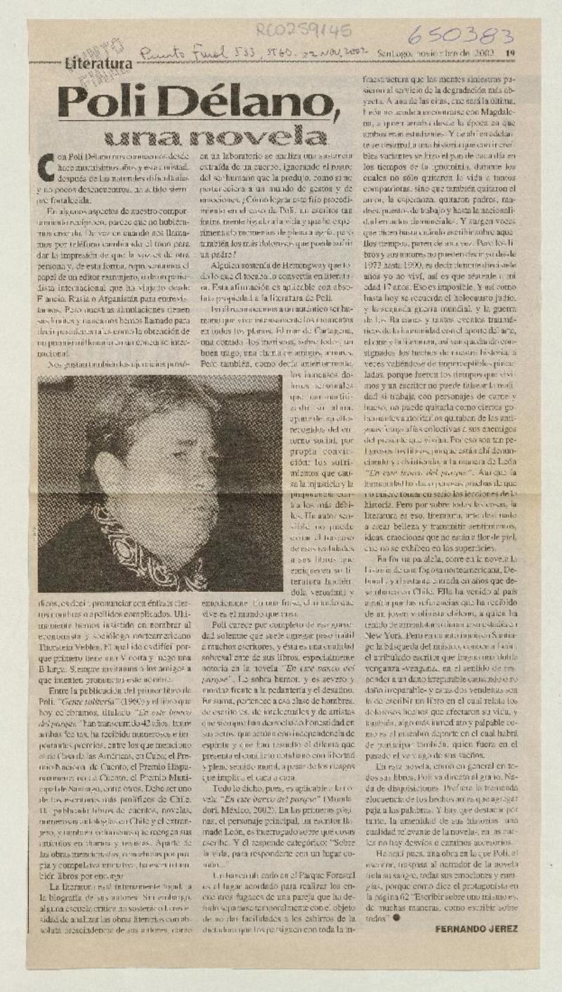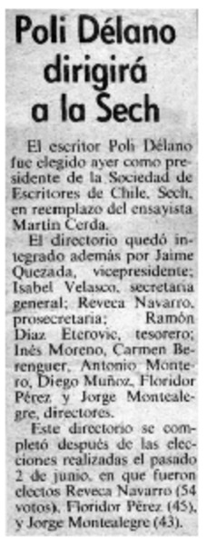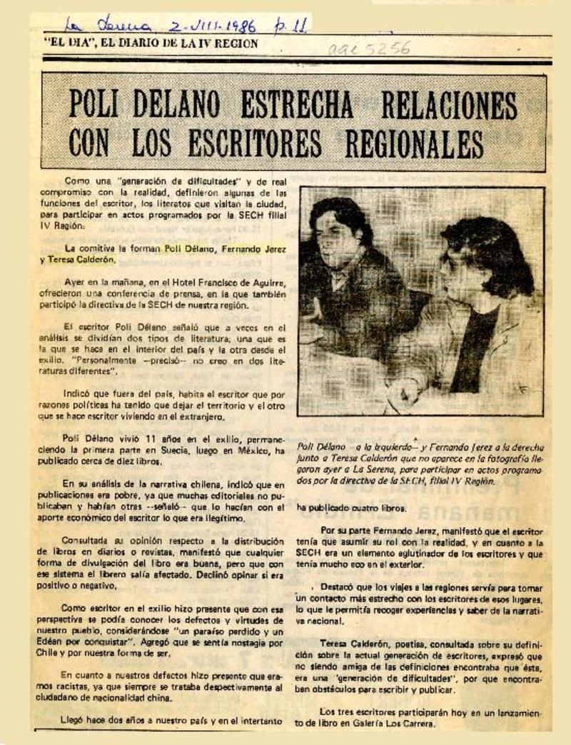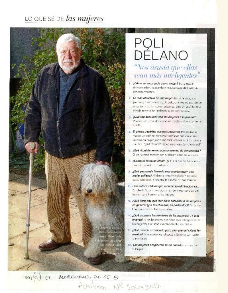 Adhesión emocionada a Poli Délano [artículo] Luis Merino Reyes.