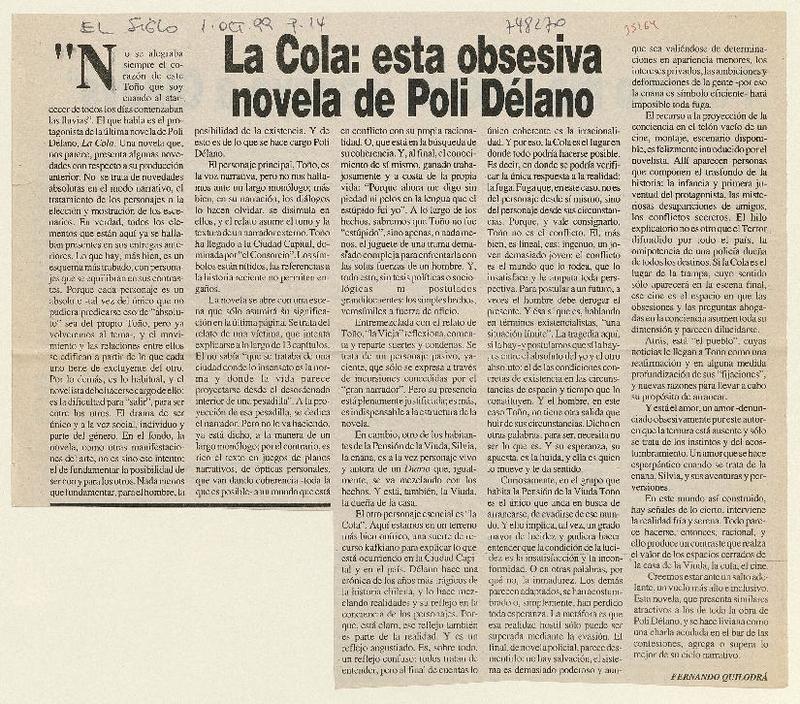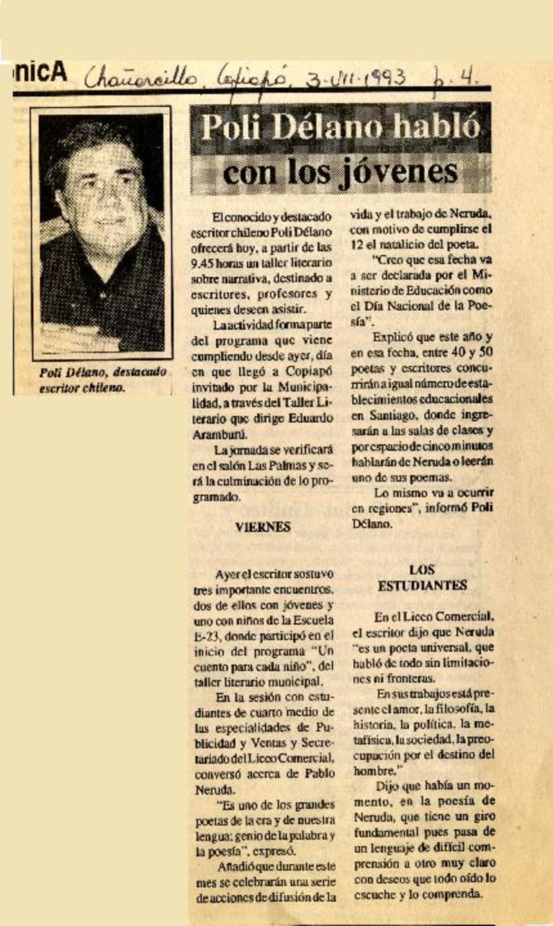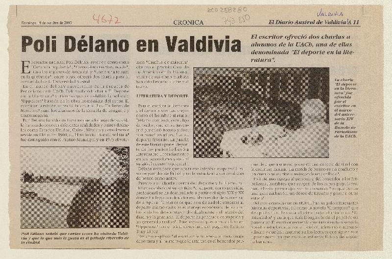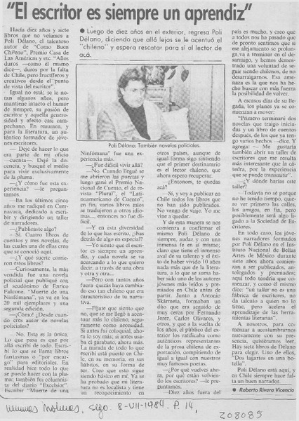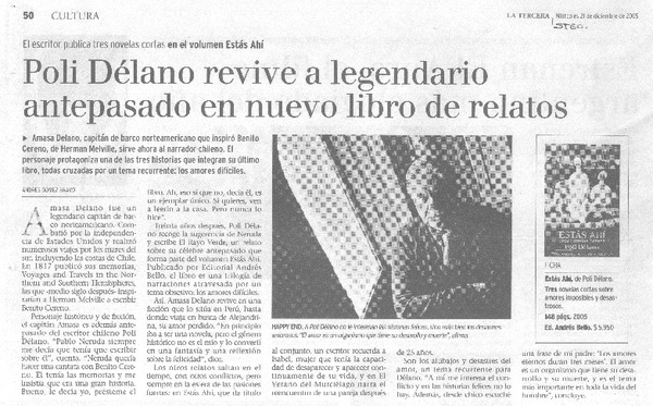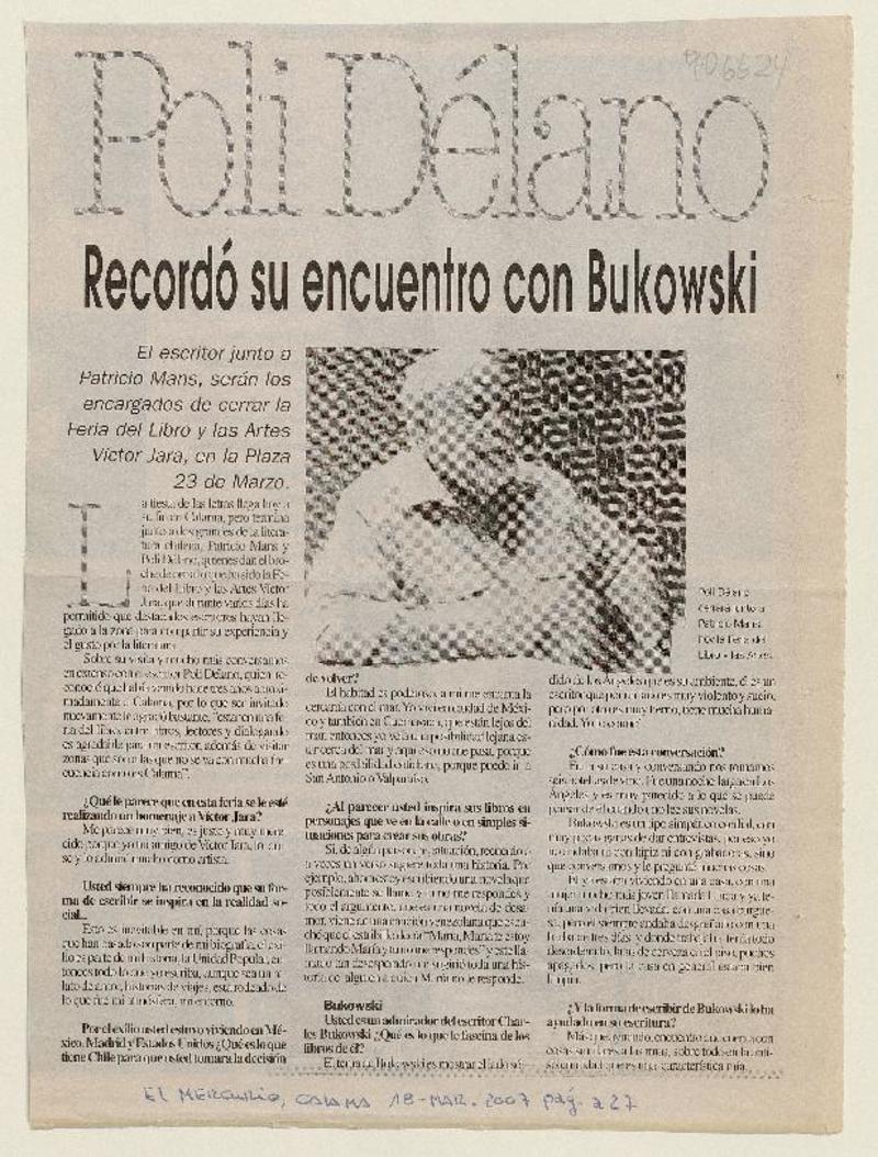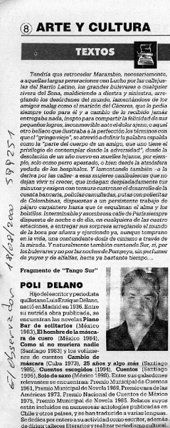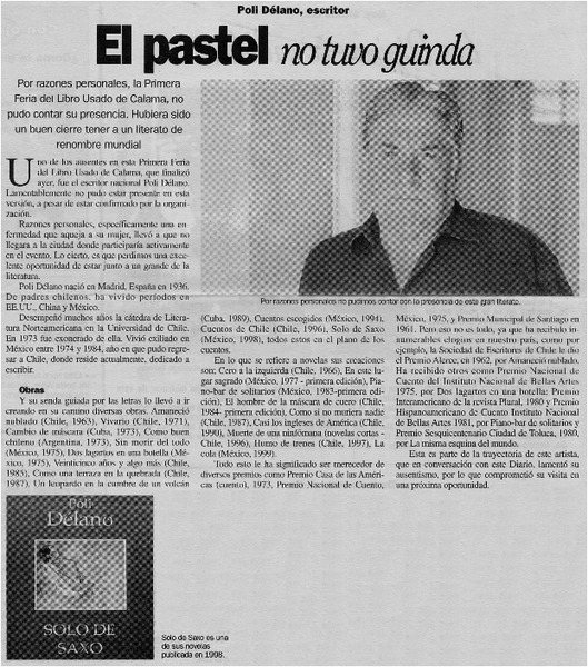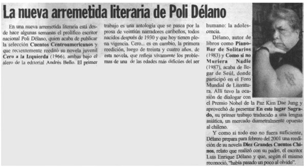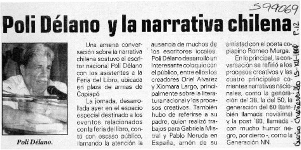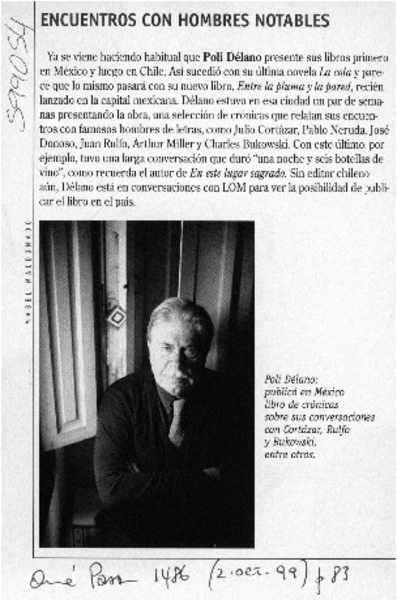 El autor de "Dos lagartos en una botella" fallecio a los 81 años Muere Poli Délano, el escritor de los personajes rudos y marginales [artículo] : Fabian Llanca.