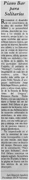 Délano presenta su "Piano bar de solitarios" [artículo].
