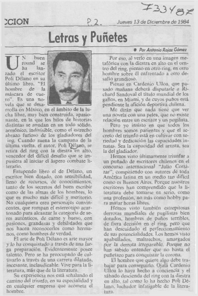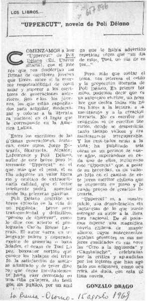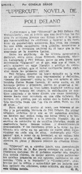 "Uppercut", novela de Poli Délano [artículo] G.D.
