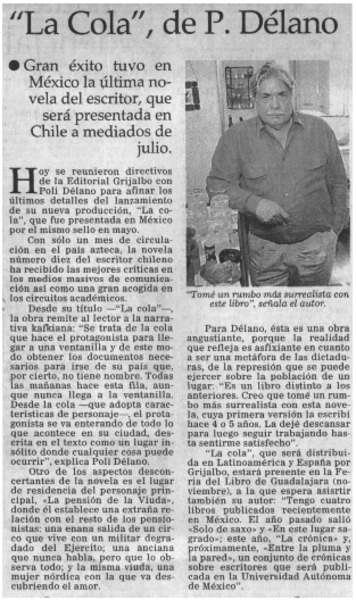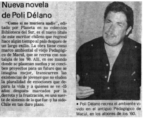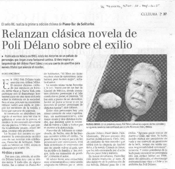 Relanzan clásica novela de Poli Délano sobre el exilio [artículo] Andrés Gómez Bravo.