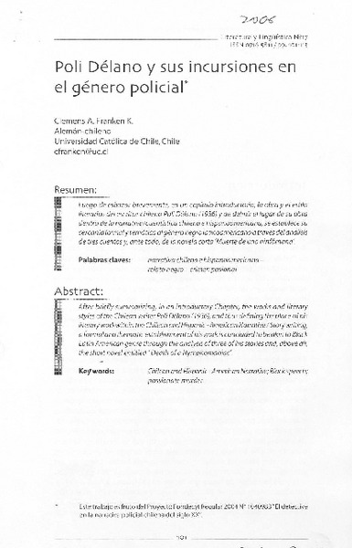 Poli délano y sus incursiones en el género policial [artículo] Clemens A. Franken K.