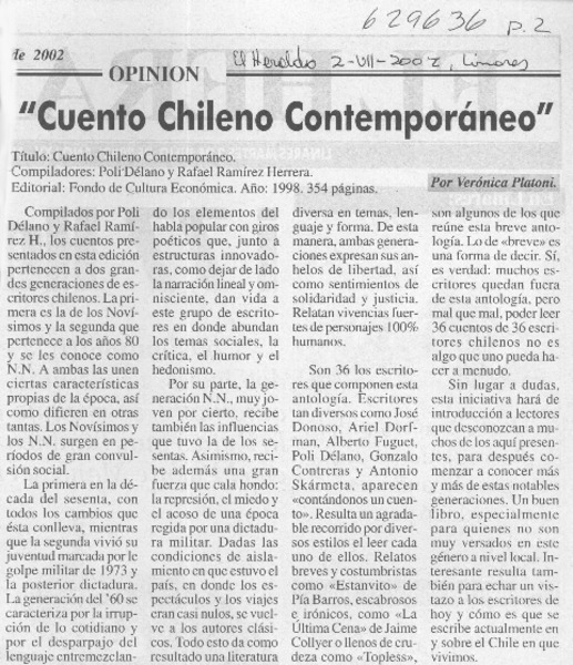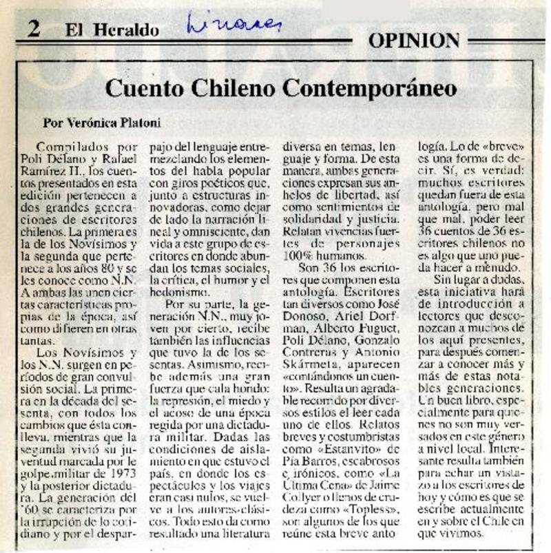 "Cuento chileno contemporáneo" [artículo] Verónica Platoni