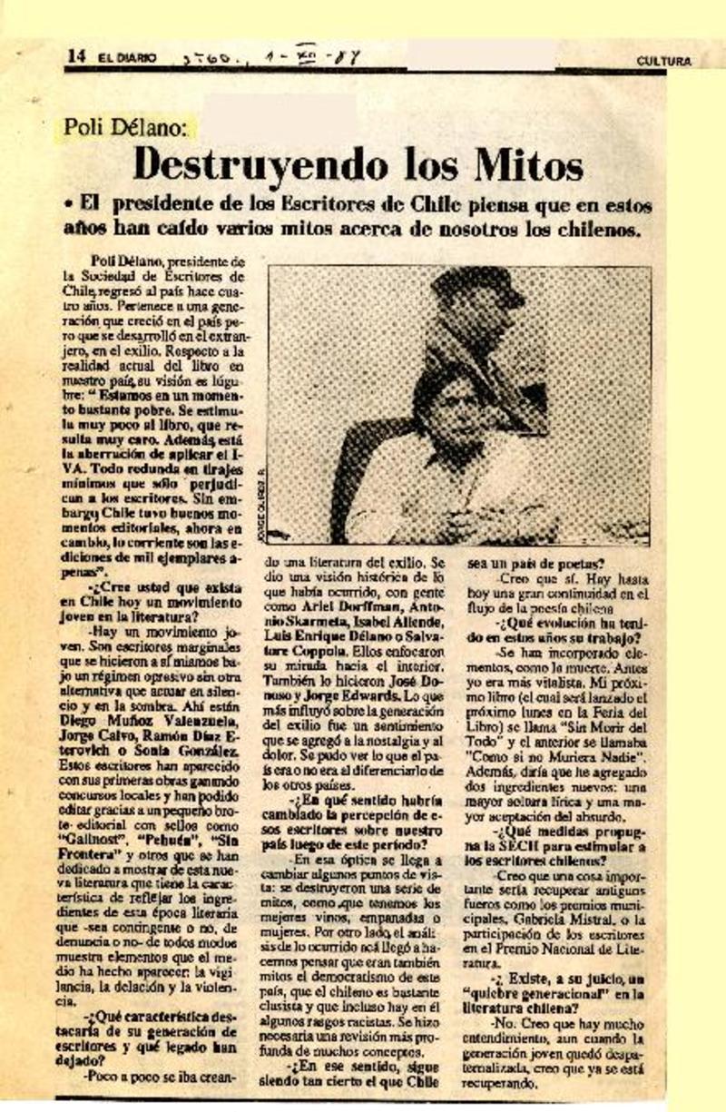 Autores chilenos - Entrevistas - Díaz Eterovic, Ramón - Délano, Poli