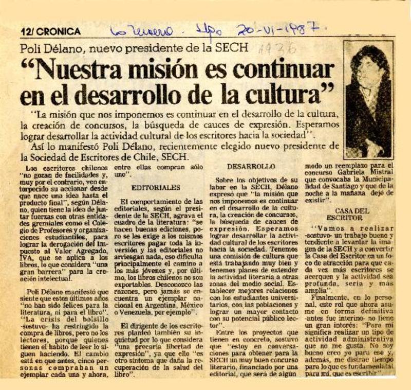 Autores chilenos - Délano, Poli - Entrevista - En este lugar sagrado