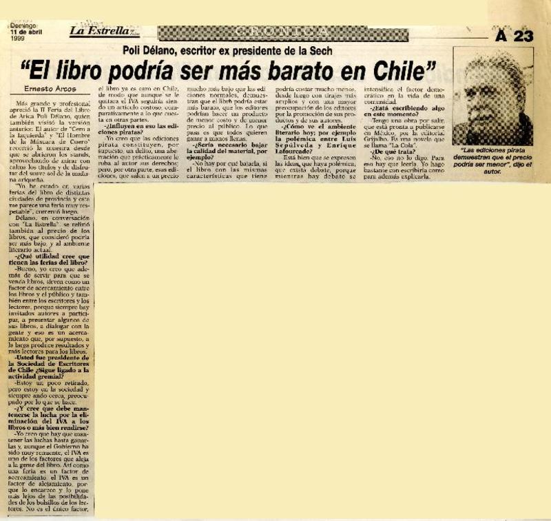 "El libro podría ser más barato en Chile" : [entrevistas] [artículo] Ernesto Arcos.