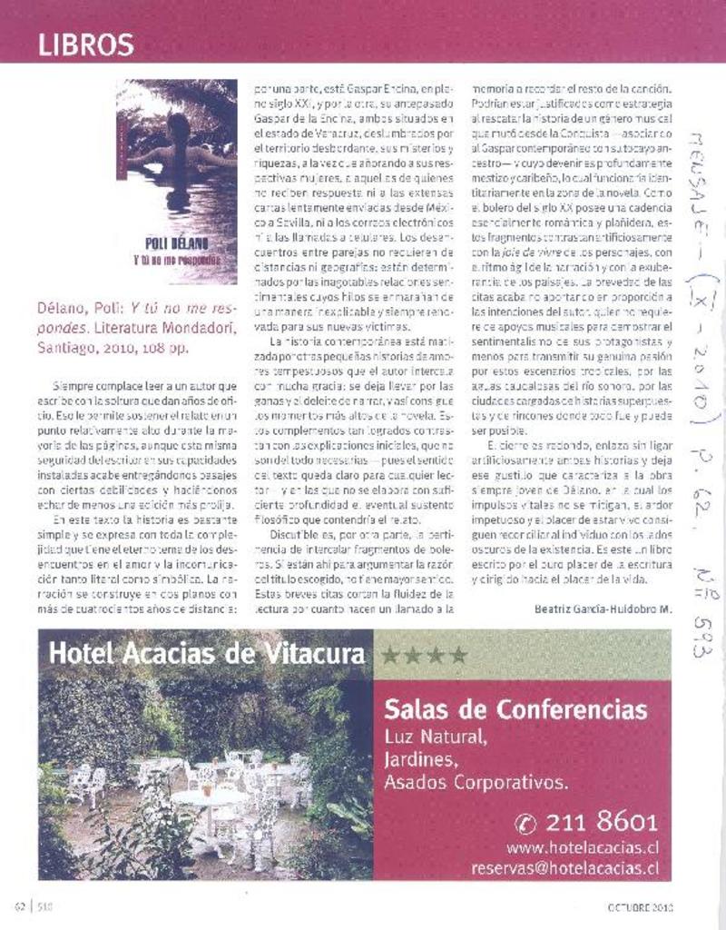 Autores chilenos - Délano, Poli - Y tú no me respondes