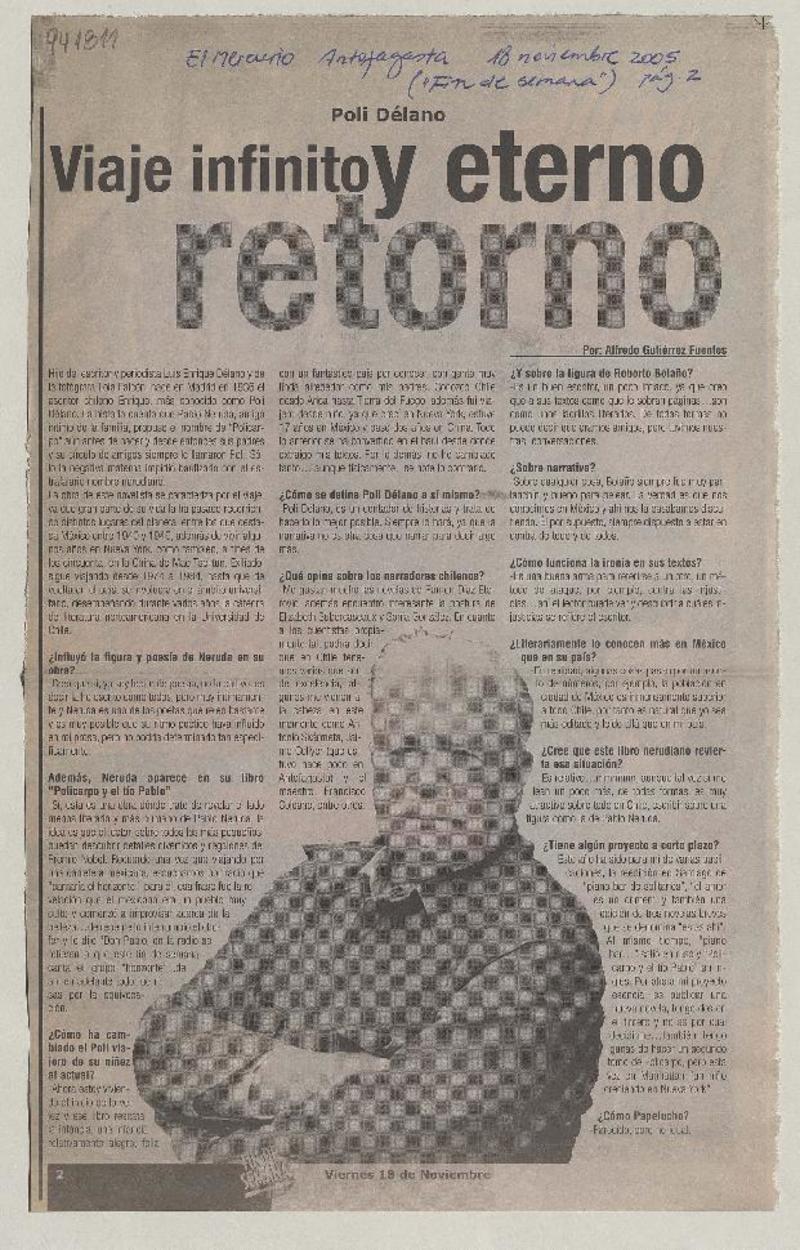 Viaje infinito y eterno retorno [entrevista] [artículo] : Alfredo Gutiérrez Fuentes.