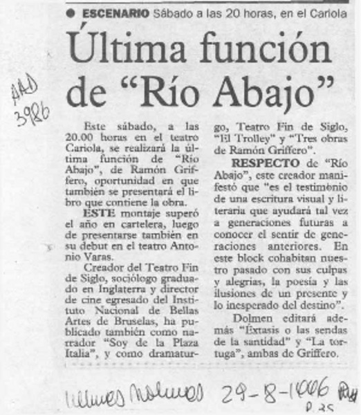 "Río abajo", teatro chileno contemporáneo [artículo] Yolanda Montecinos.