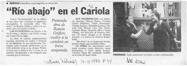 "Río abajo" reta al Teatro Cariola [artículo] Yolanda Montecinos P.