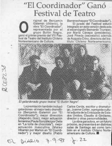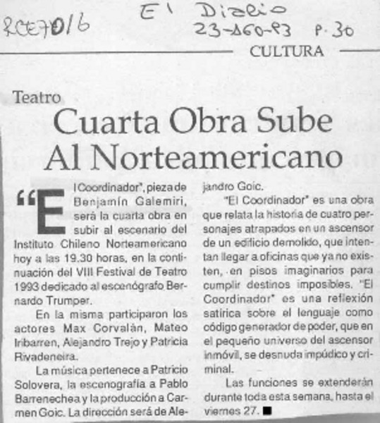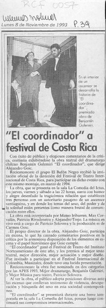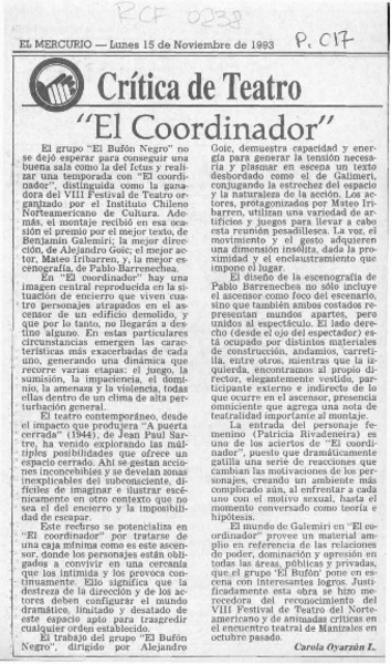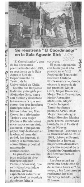 Se reestrena "El Coordinador" en la Sala Agustín Siré [artículo].
