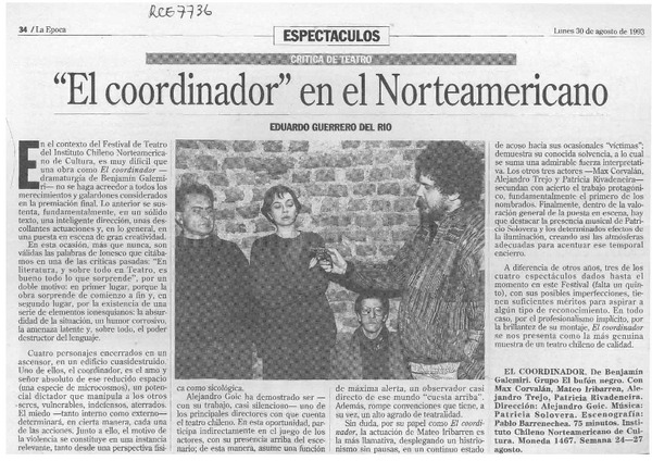 "El Coordinador" estará esta semana en la Estación Mapocho [artículo].