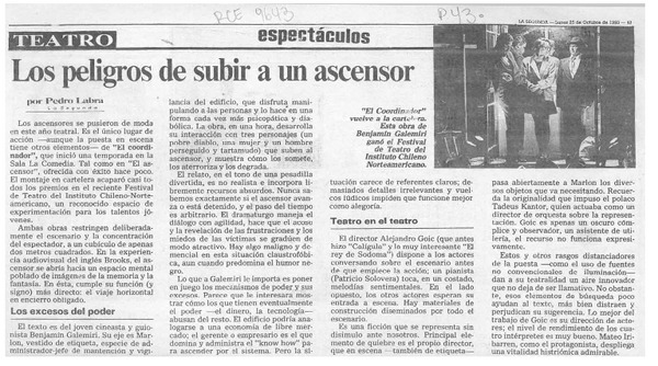 Los peligros de subir a un ascensor [artículo] Pedro Labra Herrera.