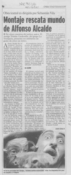Montaje rescata mundo de Alfonso Alcalde [artículo] Andrés Gómez B.