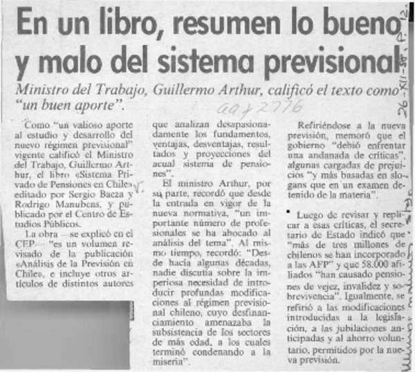 Lanzan libro sobre sistema previsional [artículo] M. H.