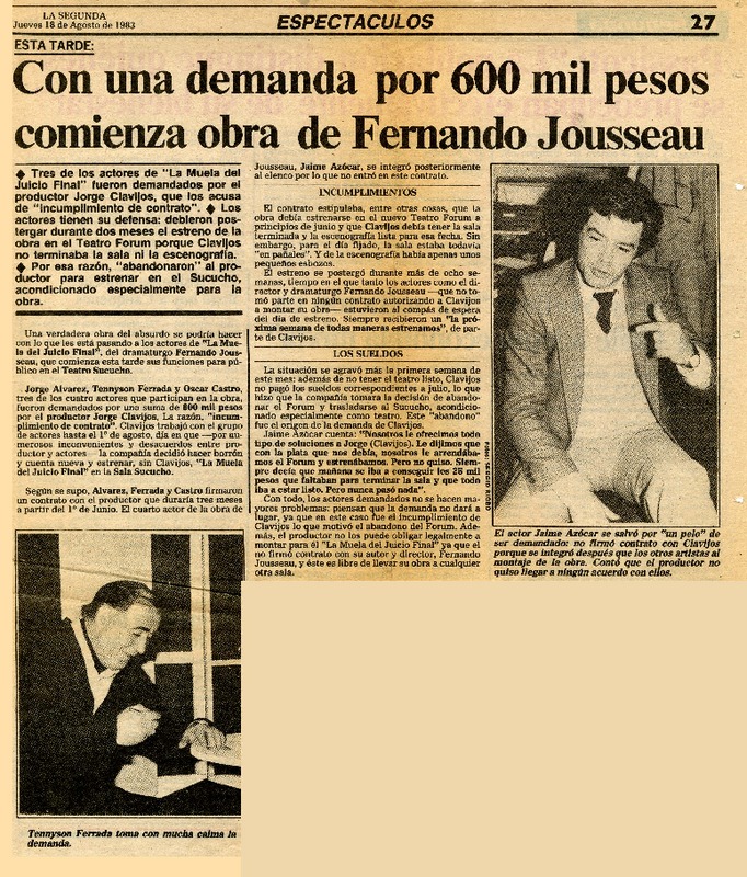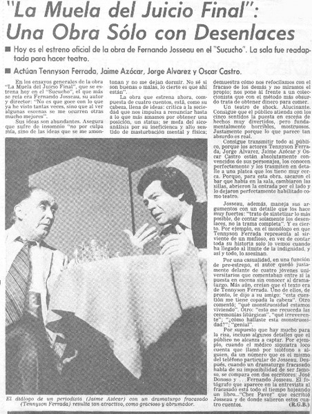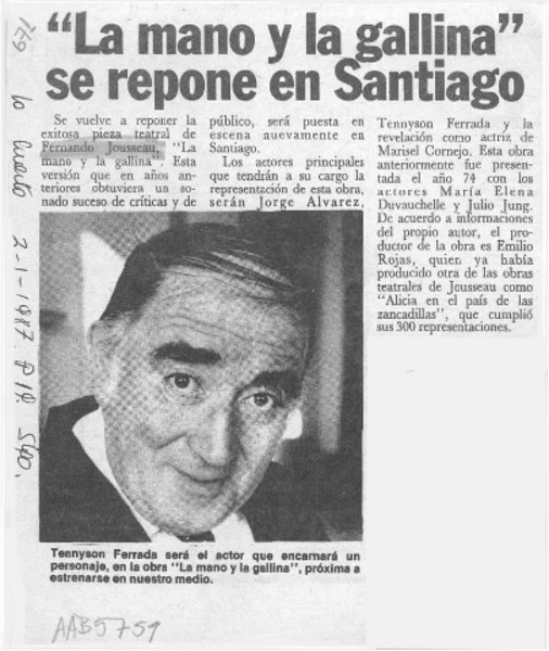 Tennyson Ferrada protagonizará pieza teatral de F. Josseau. [artículo]