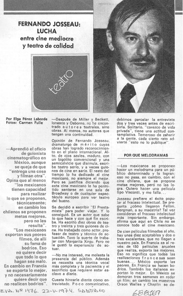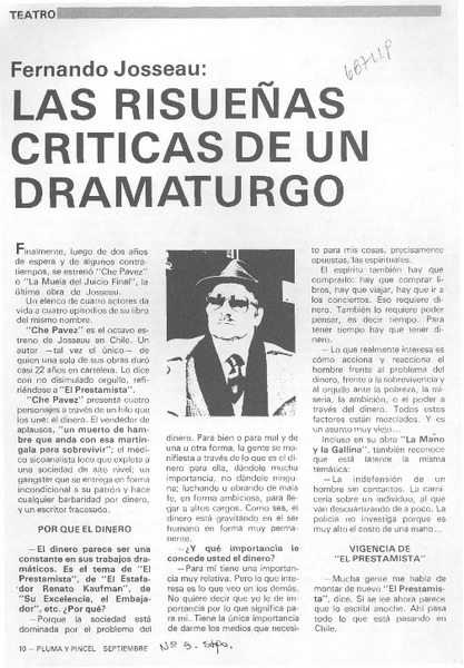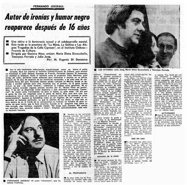 Teatro: "su excelencia, el embajador" y F. Josseau [artículo] Yolanda Montecinos.